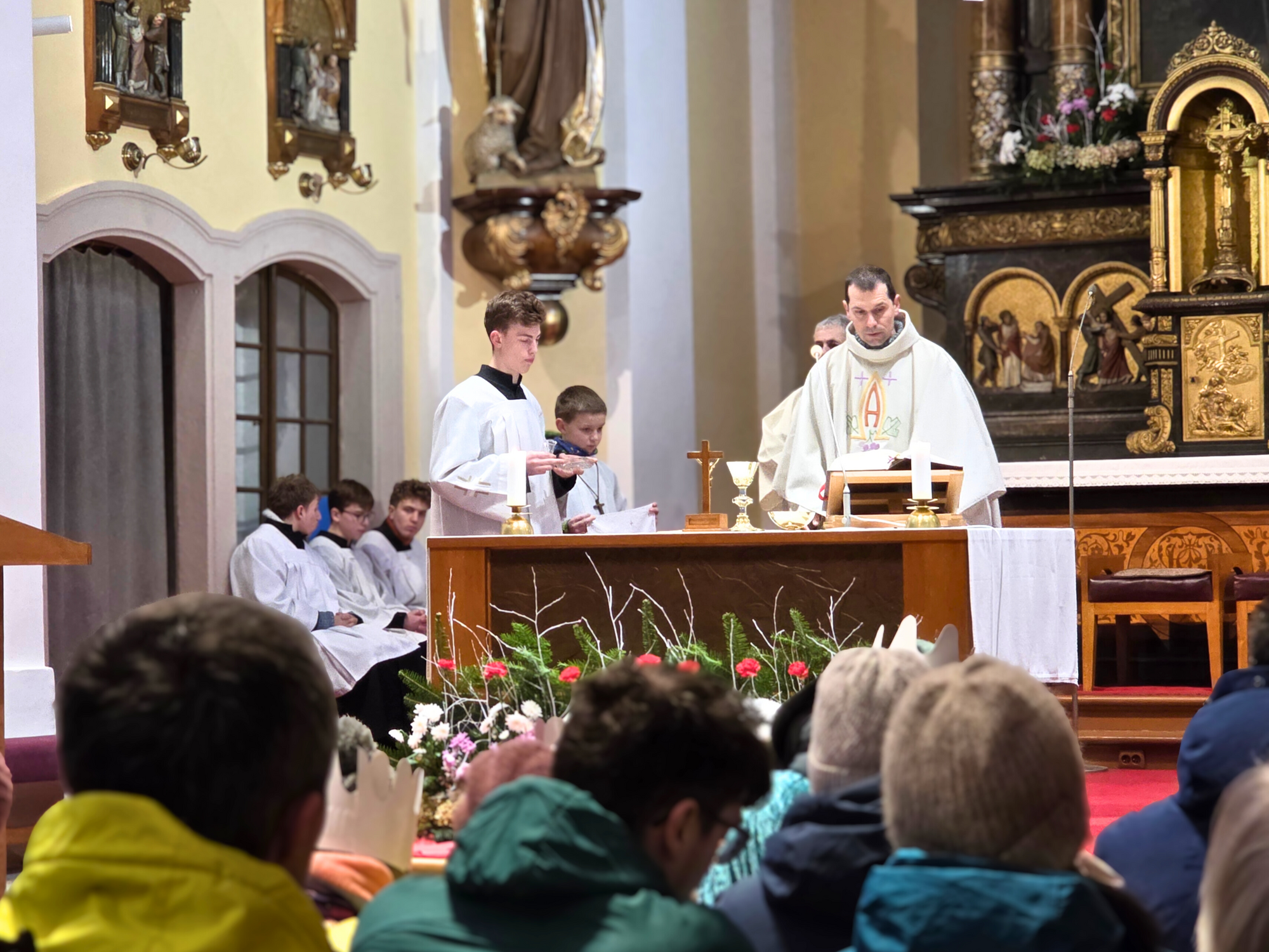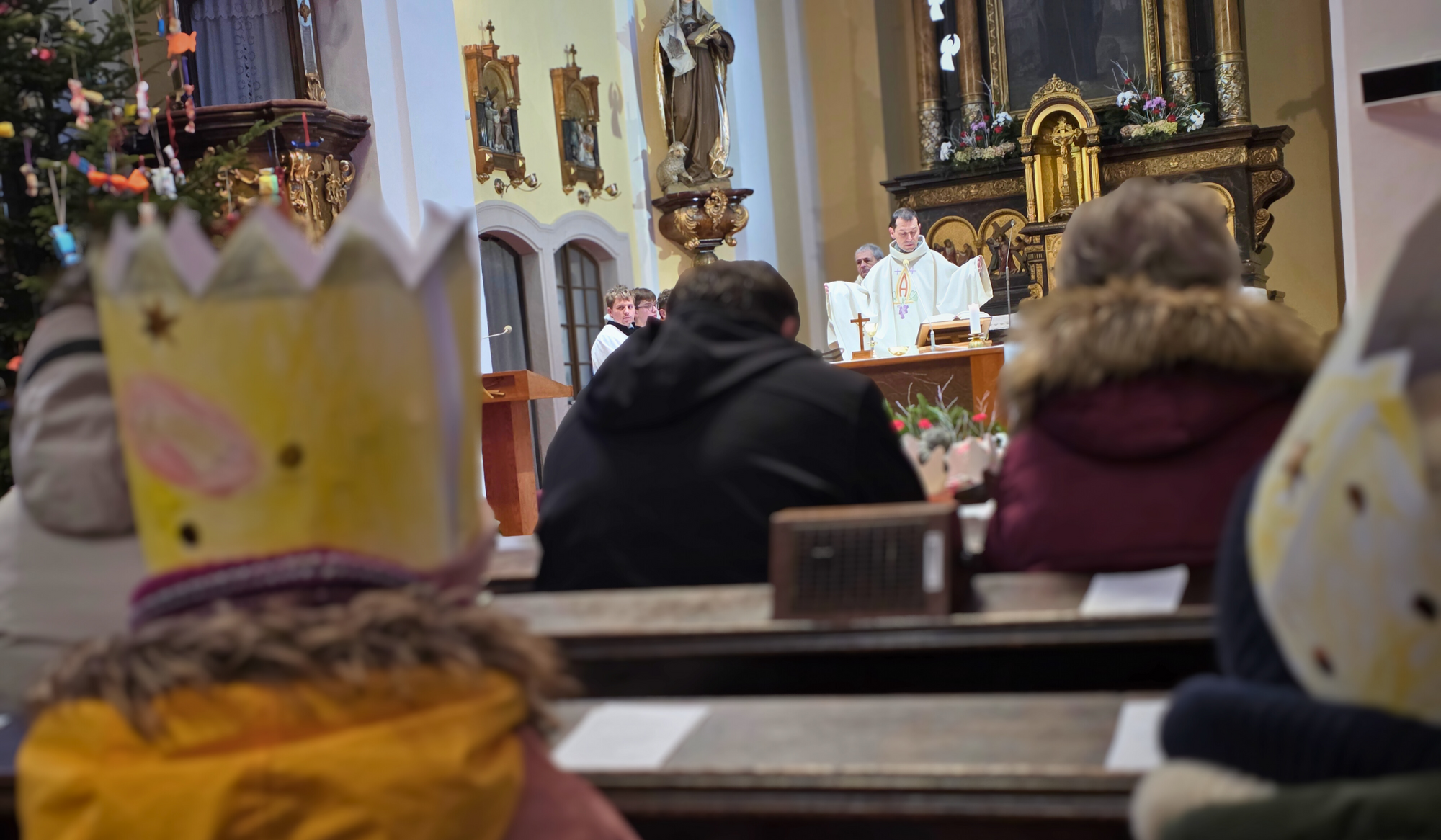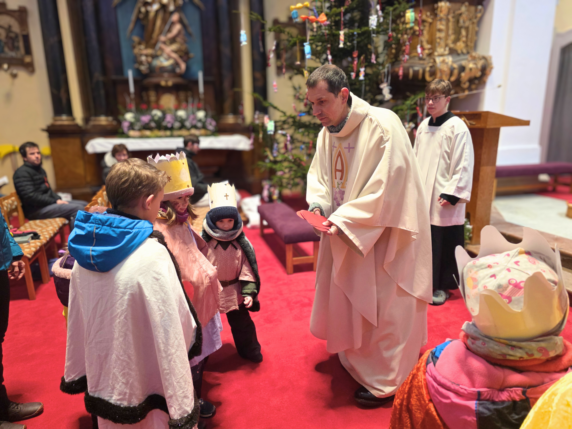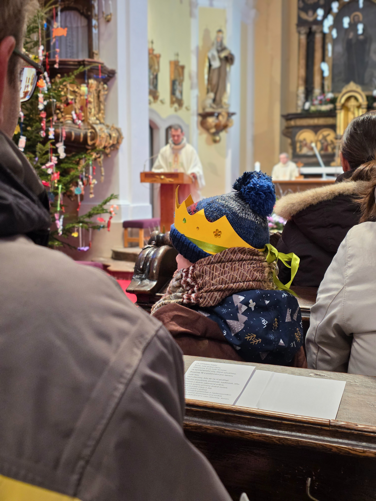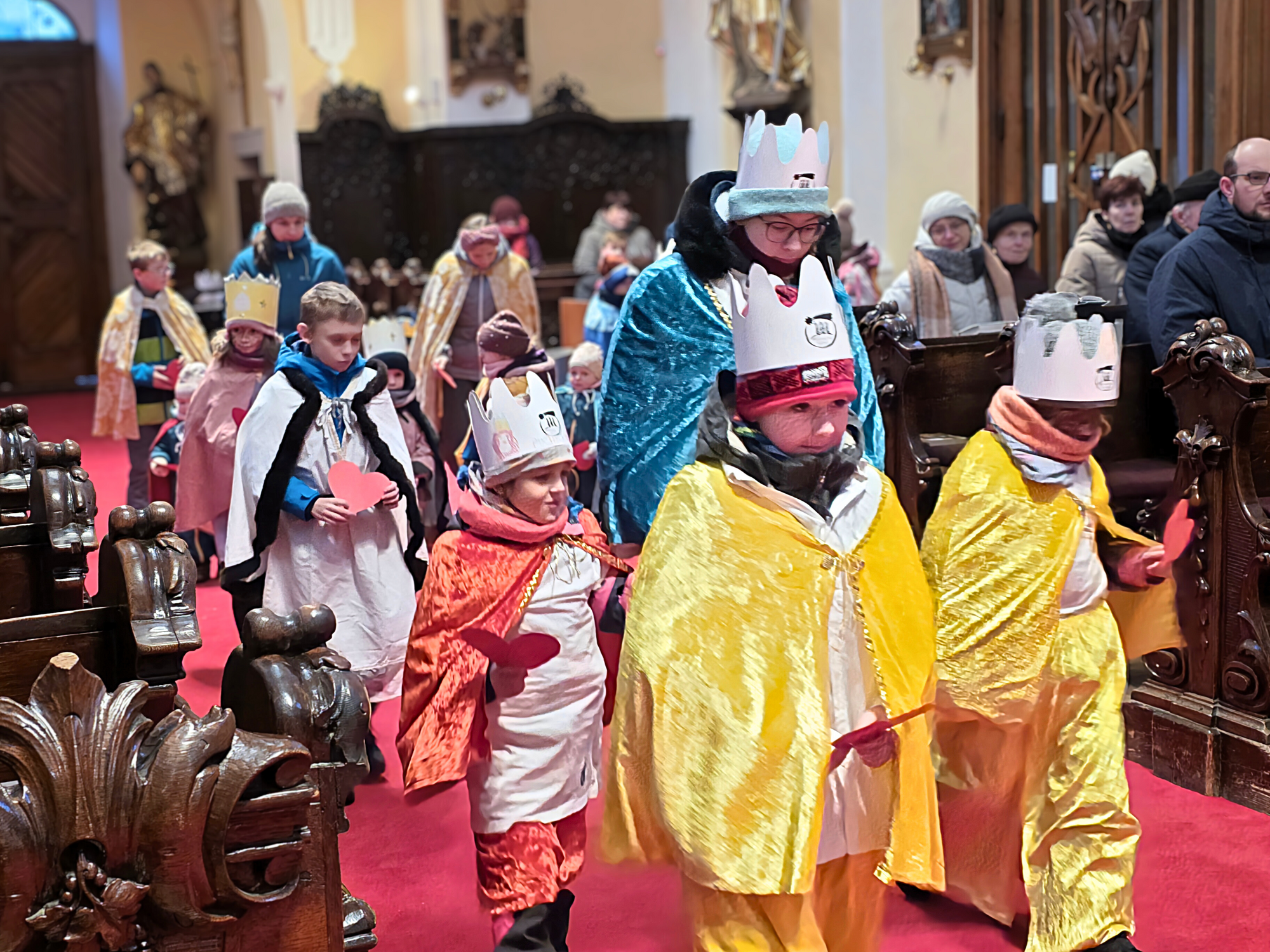 Letos mělo zahájení sbírky u nás výjimečně kouzelnou atmosféru. Po tříkrálové mši svaté nás při odchodu z kostela obklopilo jemné sněžení, které se tiše snášelo do ulic. Zanedlouho už byly vidět další přípravy – malování na obličej, děti s papírovými korunami v kočárcích, skupinky koledníků, které se formovaly před kostelem na společnou fotku.