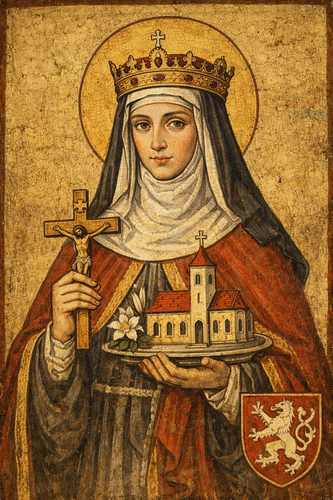 Sv. Anežka Česká (1211–1282) pocházela z přemyslovského královského rodu jako dcera Přemysla Otakara I.. Přestože byla osudem předurčena k uzavření významného dynastického sňatku, rozhodla se zasvětit svůj život Bohu a službě chudým. V Praze založila špitál sv. Františka, z něhož vznikl řád křižovníků s červenou hvězdou, a také první klášter klarisek. Po desítky let zde žila v chudobě, pečovala o nemocné, hladové i opuštěné a působila jako duchovní opora národa.